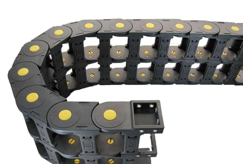 工程拖鏈的內(nèi)寬:選擇較粗的一些電纜、油管、氣管、水管等, 其外經(jīng)之和作為拖鏈內(nèi)寬的參考,并留有至少1 0% 的寬度空間。