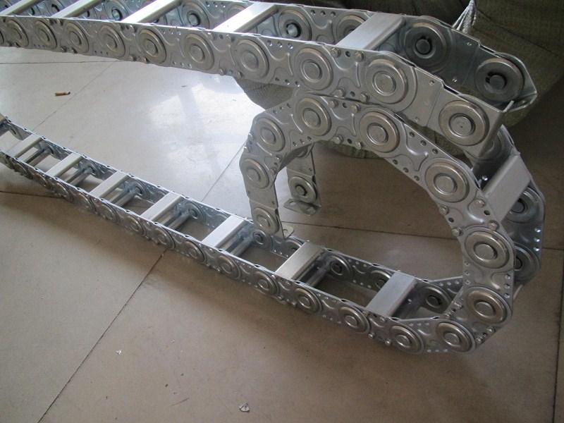 適合于使用在往復運動的場合,能夠對內置的電纜、油管、氣管、水管等起到牽引和保護作用。拖鏈每節都能打開,便于安裝和維修。運動時噪音低、耐磨、可高速運動。拖鏈已被廣泛應用于數控機床、電子設備、石材機械、玻璃機械、門窗機械、注塑機、機械手、起重運輸設備、自動化倉庫等。