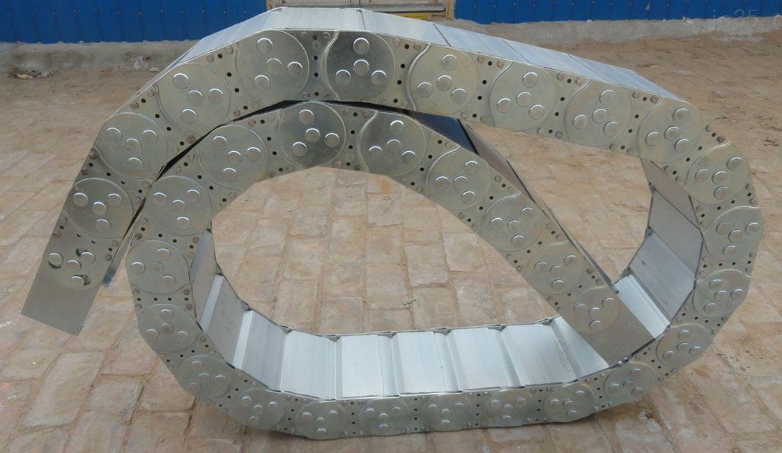 (2)鋼制拖鏈的每一節(jié)都能打開(kāi),便于安裝和維修。運(yùn)動(dòng)時(shí)噪音低、耐磨,可高速運(yùn)動(dòng)。