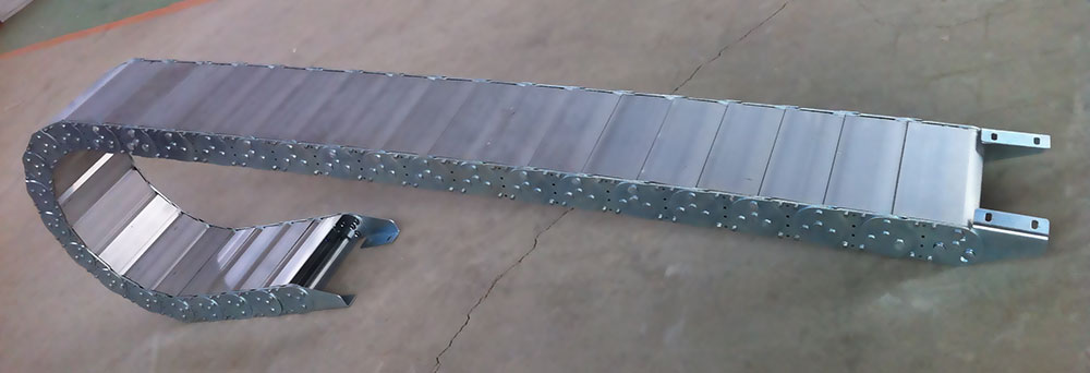 機(jī)床拖鏈?zhǔn)褂脠?chǎng)合受限制條件、或受環(huán)境影響,需采用鋼帶防護(hù)支撐板。